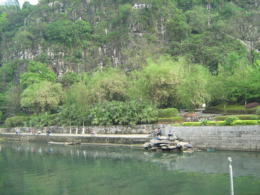 水月洞 因洞在水上,如明月浮水,与水中的倒影合成了一个圆月,故称水月洞。水月洞里江水流通,可泛小舟,在明月之夜,它的倒影则构成“水底有明月,水上明月浮”的“象山水月”奇观。历代文人墨客为感叹此自然造诣,留下不少经典佳文——“饱吸清风高卷鼻,横拖明月懒归阑”是此景的绝佳描述。