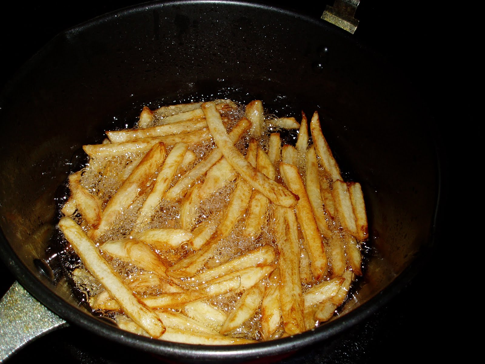土豆切好后泡半小时, 用paper towel吸干水再下锅.