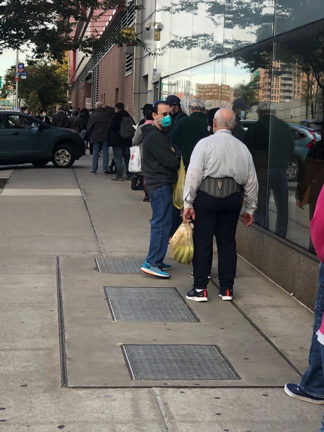 不断有人来发放口罩,因为纽约市路边到处都是发放口罩的摊位,所以我笑颜婉拒了。