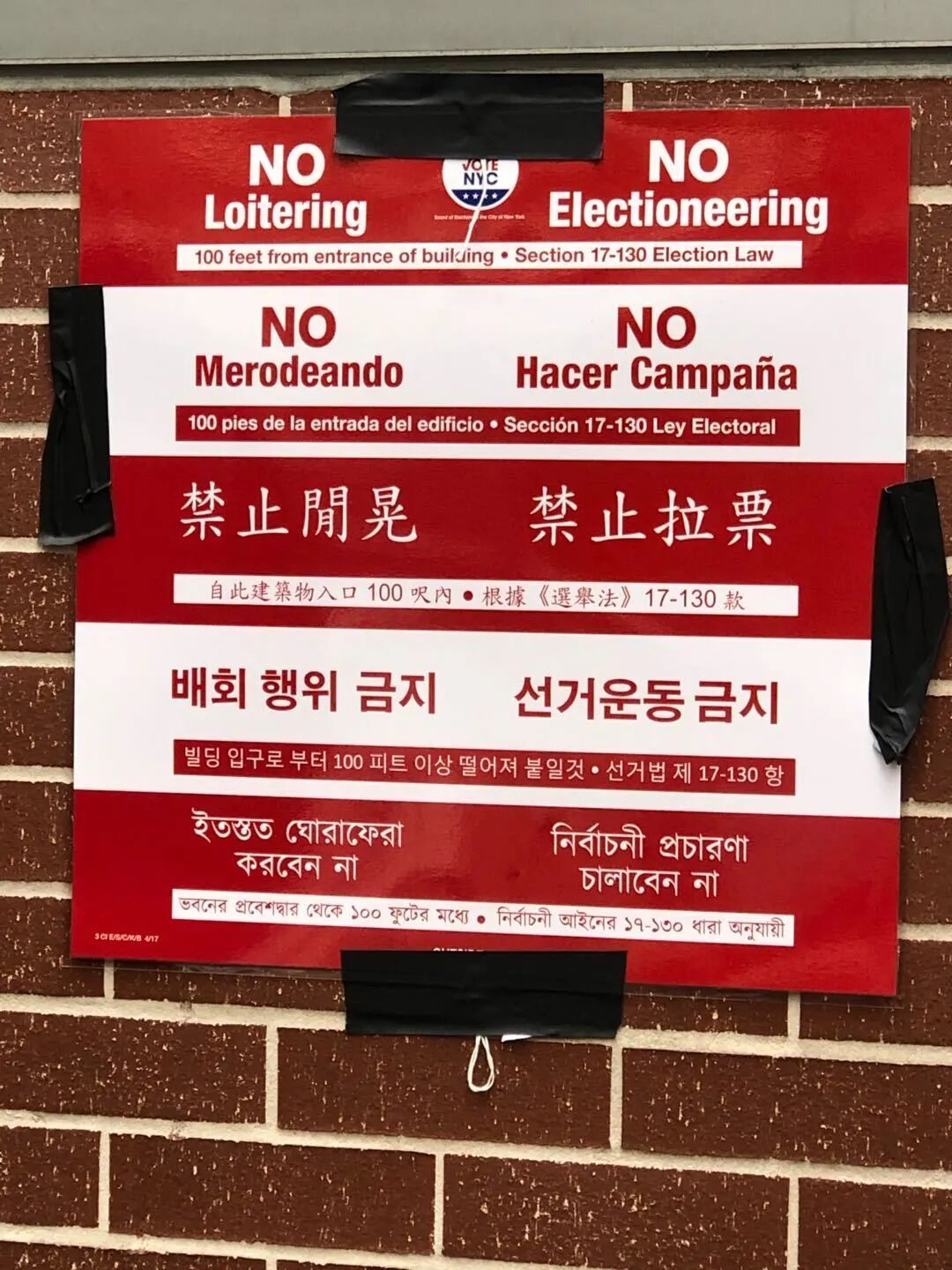 终于排到乡公所投票站门口了,门口立了一个布告板,上面用英、西、汉
