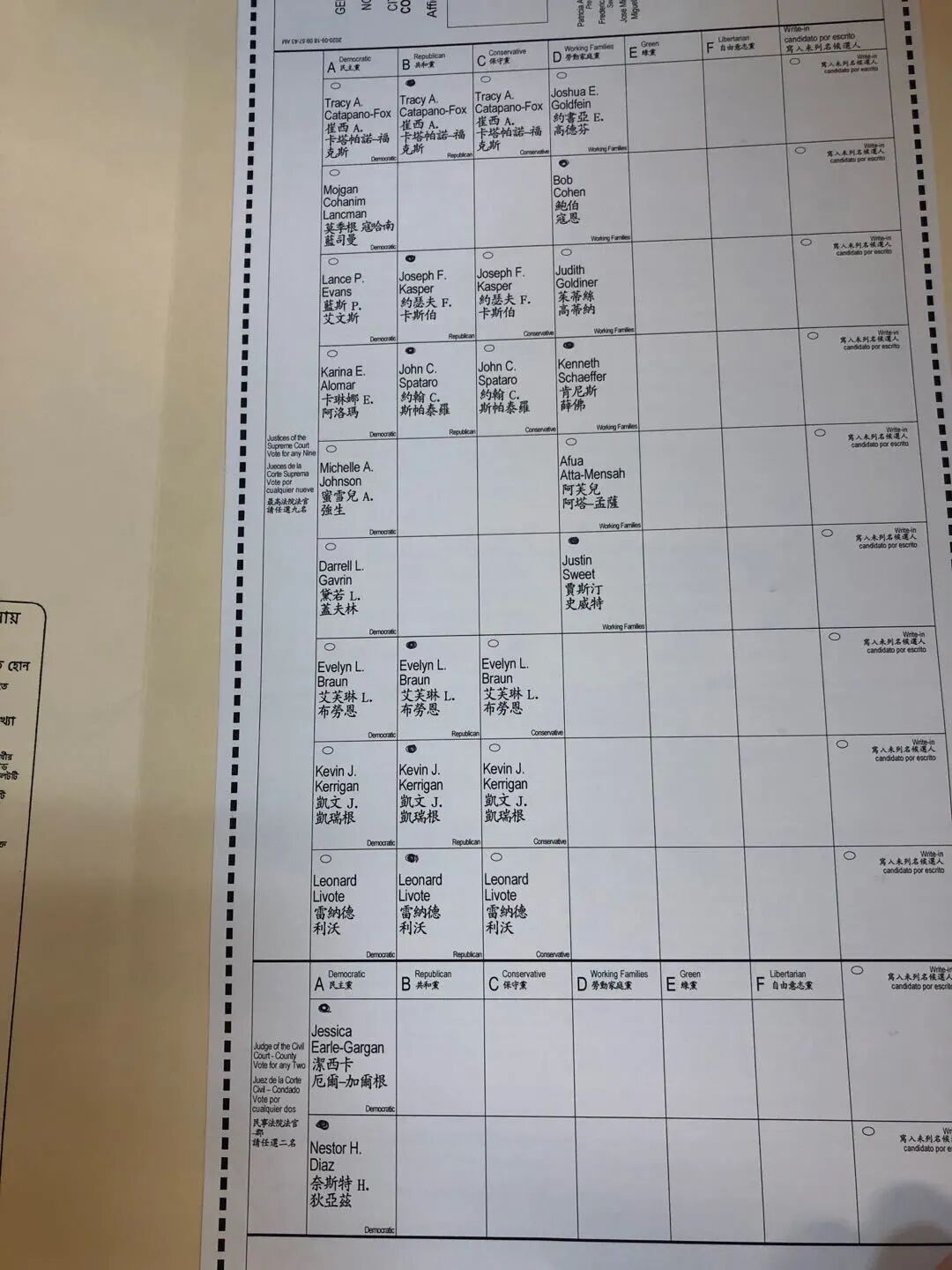 最后是州民事法院法官只有民主党参选人,我投了那两位民主党人。
