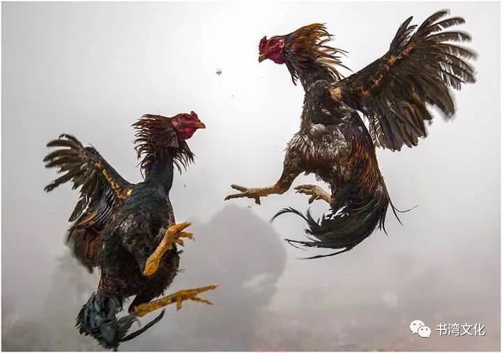 说时迟那时快,两只斗鸡把头向后一仰,鸡爪超过头顶,亮晃晃的刀子在空中划过,然后鸡屁股一翘,鸡胸部一挺,鸡爪子从上往下一划......