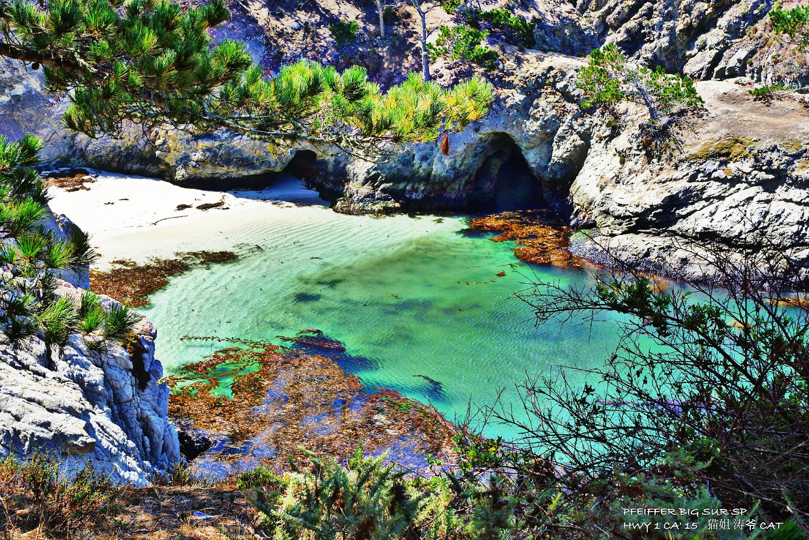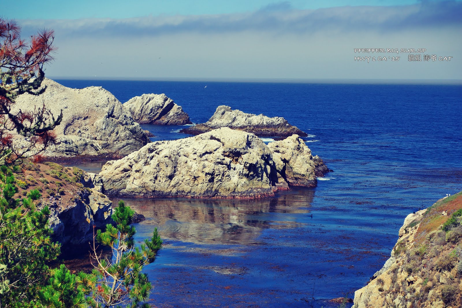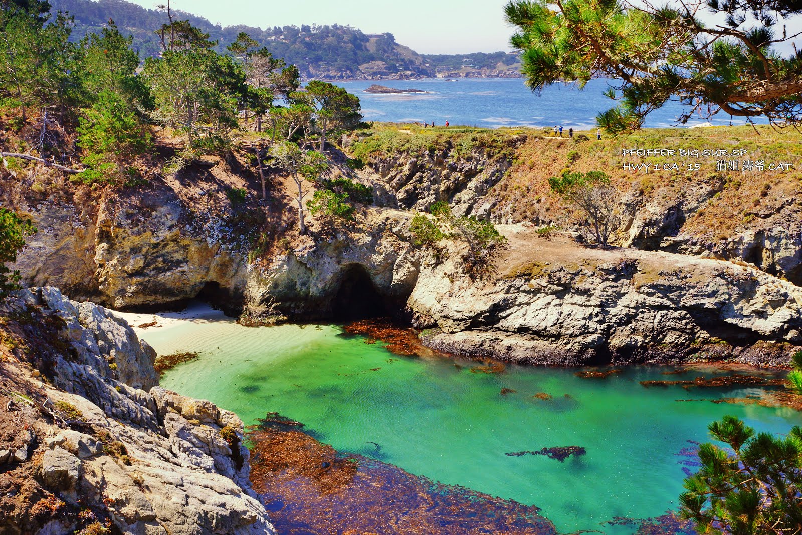 我们前往的第二个景点是非佛大苏尔州立公园,命名的由來,要追溯自約翰?菲佛 (John Pfeiffer)。約翰?菲佛 (John Pfeiffer) 是邁克爾?菲佛 (Michael Pfeiffer) 與芭芭拉?拉奎特 (Barbara Laquet) 的兒子,菲佛一家人從德國移民到大蘇爾 (Big Sur) 這一帶,也是該地區的第一批歐洲移民。菲佛於 1884 年開始住在大蘇爾河 (Big Sur River) 的河谷 (Valley) 地區,時至今日,菲佛仍有許多後裔也居住在大蘇爾地區。