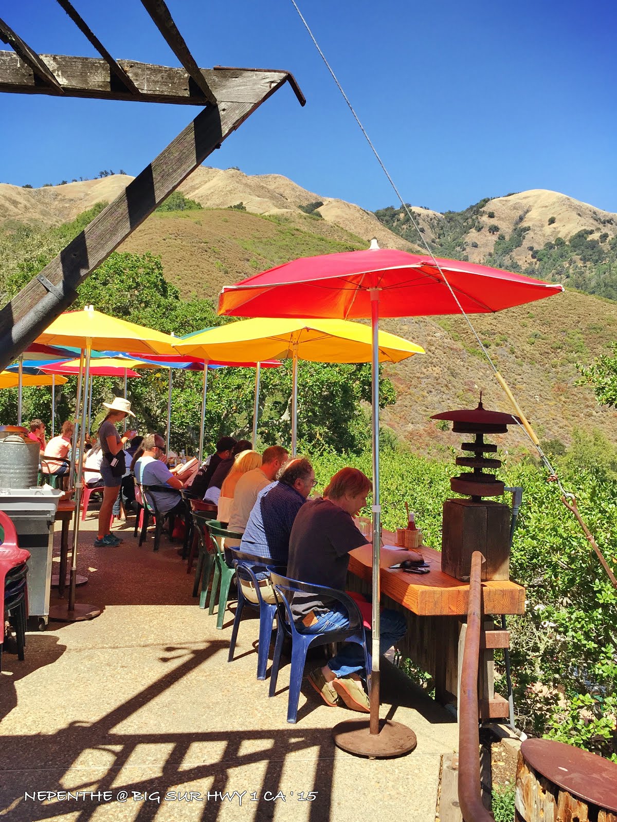 上午慢慢悠悠玩儿完三个景点,也该到了吃饭的时候,两次来到Big Sur都无缘住在这里,提前半年都没能订上仅有的几家酒店,还是有些遗憾。但是我还是选择了大苏尔风景绝美的餐厅Nepenthe.