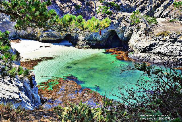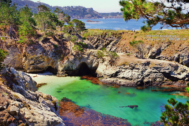 洛博斯角州立保护区,位于小镇卡梅尔(Carmel-by-the-Sea)南边不远处,开车只需10分钟,是加州的陆地往太平洋里伸出的一个角,紧邻1号公路,再往南就是有名的大瑟尔(Big Sur)。 这里海天相接,有布满鹅卵石的海滩,也有铺满柔软白沙的小块海滩,许多海豹栖息在这片海域的岩石上,更时不时有海豹在沙滩上打盹,不怕游人拍照,非常的可爱。