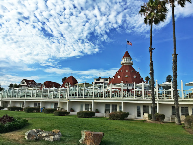 在西班牙语中,Coronade意为“加冕者”,因此该岛又名为“皇冠之都”(The Crown City)。它的成名源于1888开业的Hotel del Coronado。整个Coronado Beach沿线都是一个完美的消磨时间的地方,这里被Mr. Beach评为全美最美沙滩,骑行、赏日落、嬉水、帆船、沙排等都是好选择。科罗拉多大桥(Coronado Bridge)将圣迭戈和科罗拉多岛紧密地联系在了一起。大桥呈弧形,随桥面高度上升会有一个80度的大弯,行使在上面便可将湾区的景色尽收眼底,仿佛凌驾于海上,与碧海蓝天相邻。在桥上的时候记得对着圣迭戈的方向拍照,超美的!我们来到这家酒店,多少名人明星住过的酒店,到这里时闺蜜的老公说:我们为什么不住在这里?我无语,不是我不想,只是觉得这里有些与世隔绝的感觉!