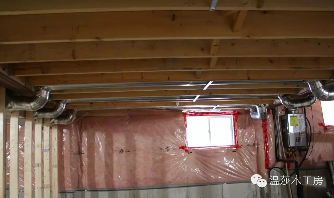 在设计的初期,我就做一些改动了。我的builder在通风管道上偷懒了,有很多管子没有转到beam 之间,而是直接在beam的下面走,这样将来那个位置的屋顶高度就要降低大约半尺左右。为提高屋子高度,我把管道进行调整,全部转入到 beam 之间。 因为这样会增加很多弯道,我担心会不会影响风量,后来证明我的担心是多余的。 我先注明一下,我只改了通到一楼的管道,大约4-5 根吧,如果要改通往二楼的管道还需要注意。
