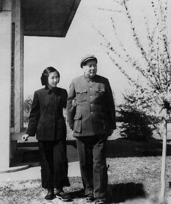 1953年,春天,毛泽东和小女李讷在北京万寿路住地赏梅。 徐肖冰/摄。