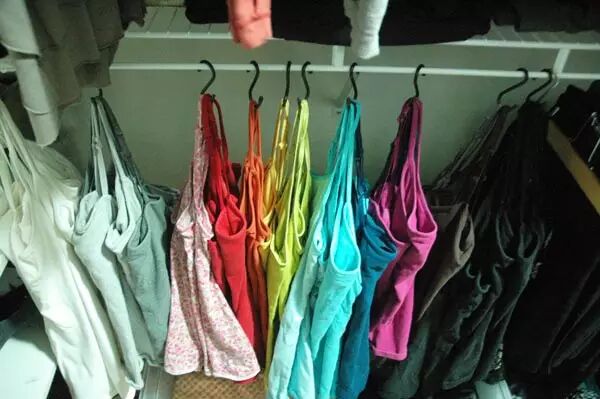 7.接下来,按颜色/类型整理:视觉强迫症患者可以按潘通色卡分类;讲究混搭出时髦的,可按衣物类型来组织。不妨考虑以下TIPS: