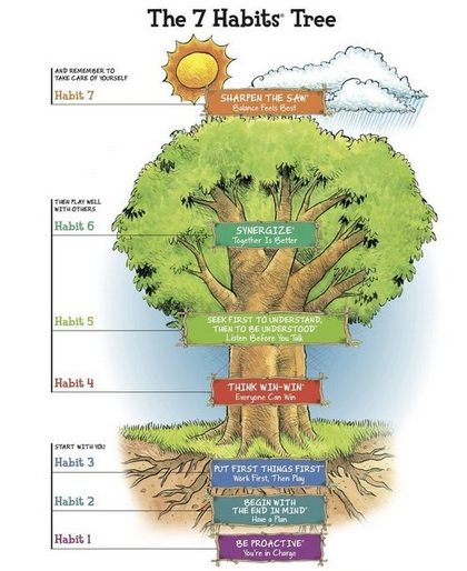 很多美国学校根据这两本书的内容,给学生们画了一个叫 7棵习惯树 / The 7 Habits Tree -的海报,作为孩子们品格教育的参照纲领。