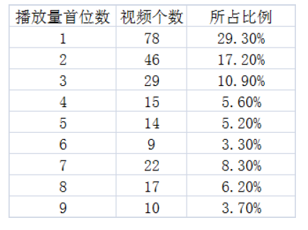 某平台视频播放量首位数比例