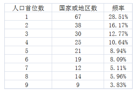 世界各国人口首位数比例