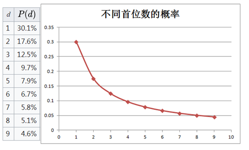 按照这个公式,不同的首位数概率如下: