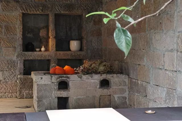 原本的石屋墙壁,只是消了毒,未经其他处理。