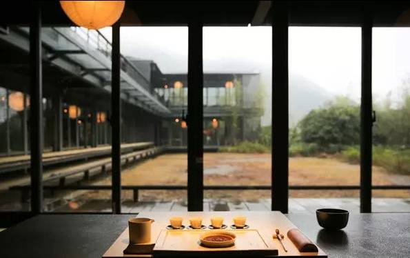 一转身,却又豁然开朗,茶室四周都是落地窗,视线没有遮挡,林炳辉把山色水景全请了进来做客。