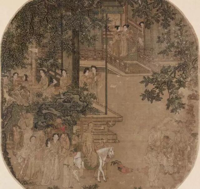 台北故宫博物院藏有一幅传为李嵩的山水小品画《水殿招凉图》