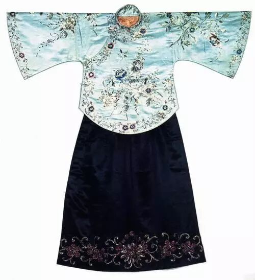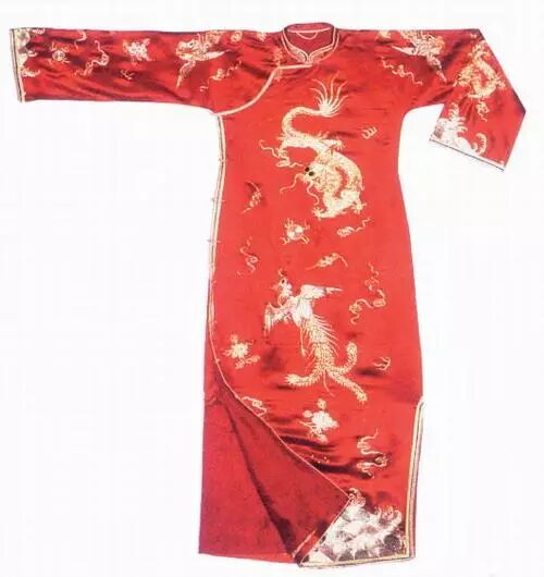 我们不大能够想象过去的世界,这么迂缓,宁静,齐整——在满清三百年的统治下,女人竟没有什么时装可言!一代又一代的人穿着同样的衣服而不觉得厌烦。开国的时候,因为“男降女不降”,女子的服装还保留着显著的明代遗风。从十七世纪中叶直到十九世纪末,流行着极度宽大的衫袴,有一种四平八稳的沉着气象。领圈很低,有等于无。穿在外面的是“大袄”。在非正式的场合,宽了衣,便露出“中袄”。“中袄”里面有紧窄合身的“小袄”,上床也不脱去,多半是娇媚的桃红或水红。三件袄子之上又加着“云肩背心”,黑缎宽镶,盘着大云头。