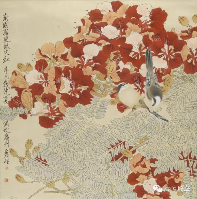 在中国画中,凡以花卉、花鸟、鱼虫等为描绘对象的画,称之为花鸟画。花鸟画中的画法中有“工笔”、“写意”、“兼工带写”三种。工笔花鸟画即用浓、淡墨勾勒动象,再深浅分层次着色;写意花鸟画即用简练概括的手法绘写对象;介于工笔和写意之间的就称为兼工带写,形态逼真。