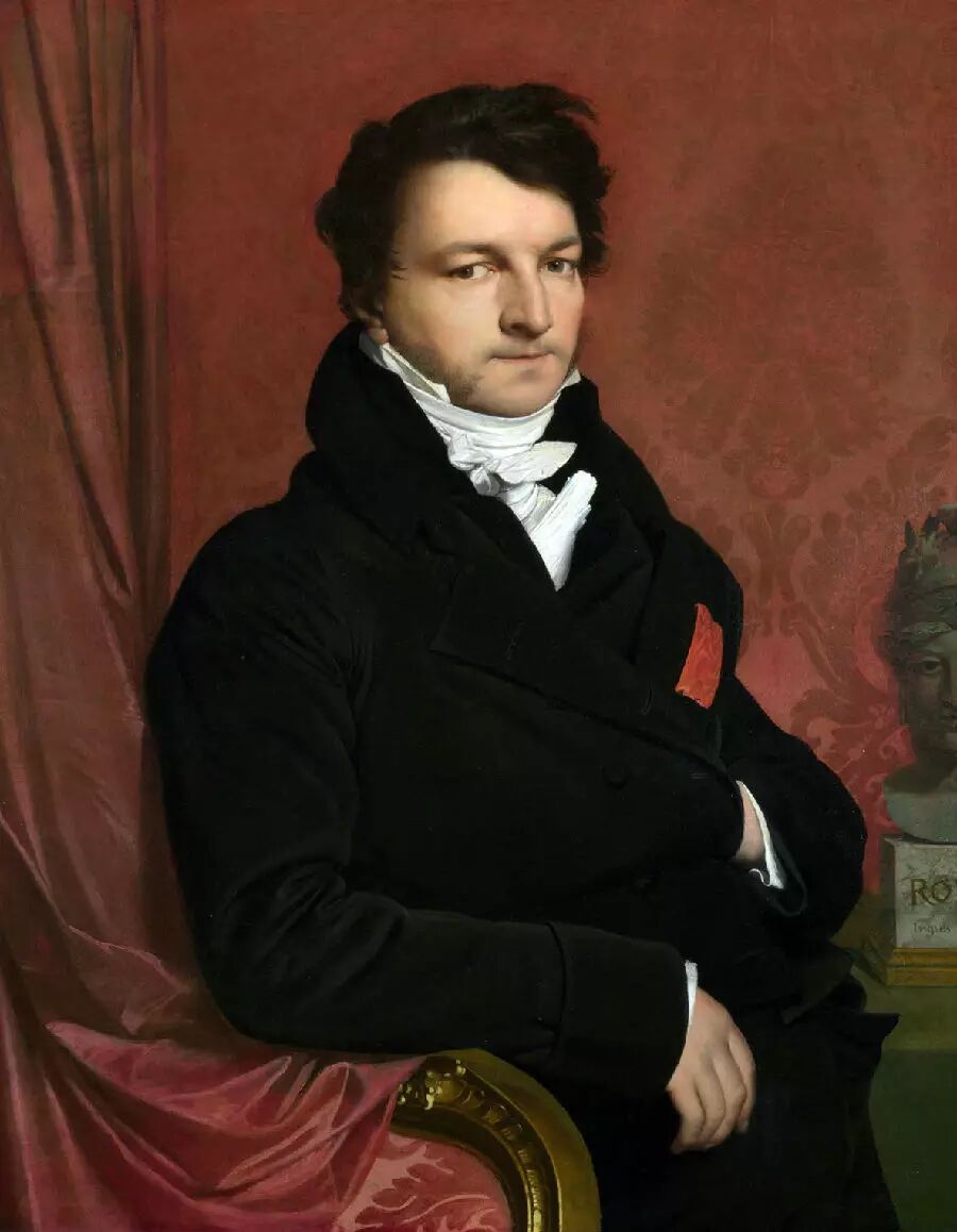安格尔是19世纪法国杰出的古典主义画家。1806年,安格尔赴意大利,1824年回到巴黎。后来,1834~1841年,他再度赴罗马,深刻地研究了文艺复兴时期意大利古典大师们的作品,尤其推祟拉斐尔。他善于把握古典艺术的造型美,注重细节的刻画,强调纯洁而淡漠的美,古典艺术在他这里获得了升华,他也因此成为名副其实的“古典鼻祖”。