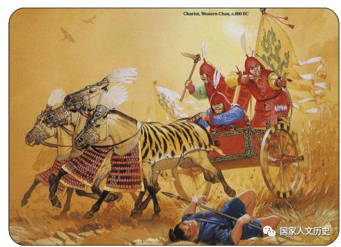 这是先秦时期典型的一幕战斗场景。当时的华夏诸国基本以战车(又称兵车、甲车)作为进行战争的主要武器,马拉战车驰骋在先秦时代的战场上长达千余年之久,车战也一度成为中原战争的主要形式。