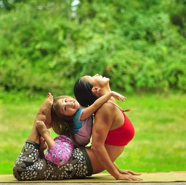 美极了的一对母女!4岁的小姑娘和36岁的妈妈。请在这里欣赏她们一起做瑜伽的照片。