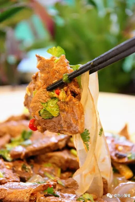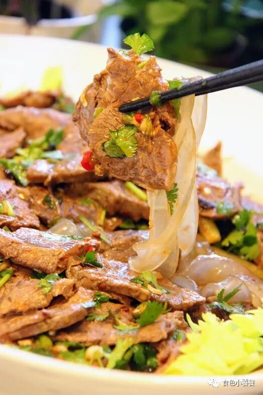 这道菜源自青藏高原多民族聚居区,糅合异域野性与川味香辣,切薄的酱牛肉包裹鲜香酸辣的料汁,瞬间带给味蕾礼花绽放般璀璨绚烂的味觉享受,吸饱牛肉香汁的粉皮儿,Q弹爽滑,比牛肉更受欢迎。