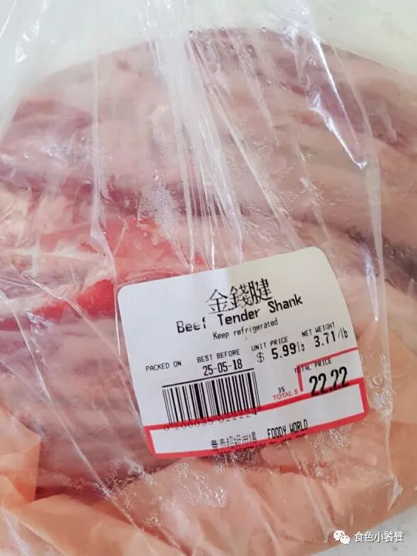 金钱腱500克,8克盐抹在牛肉表面,入冰箱腌制一晚。