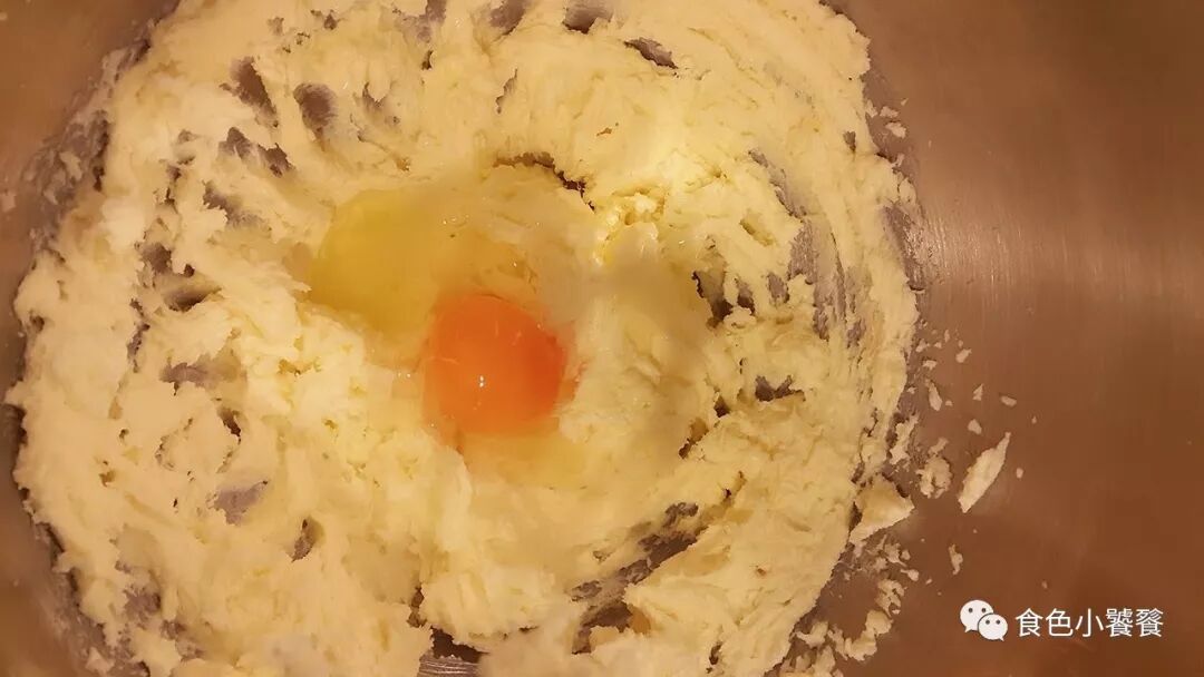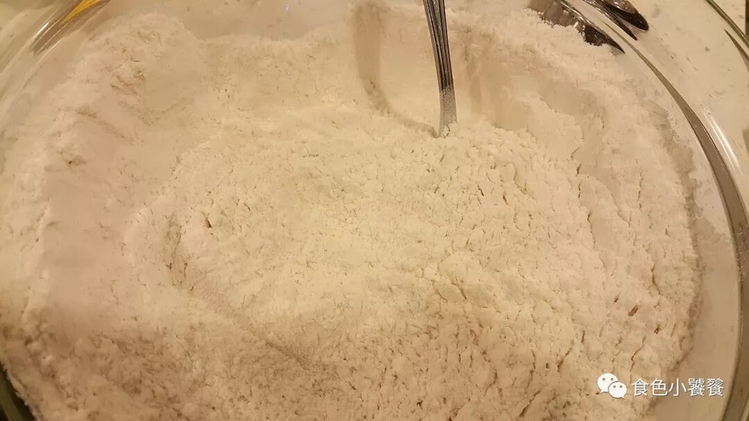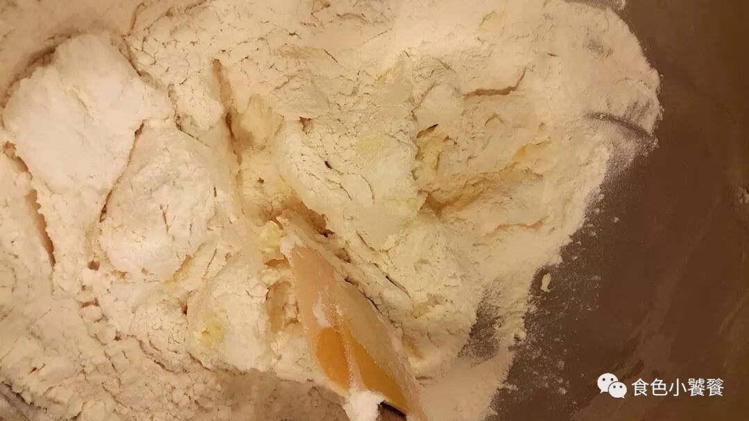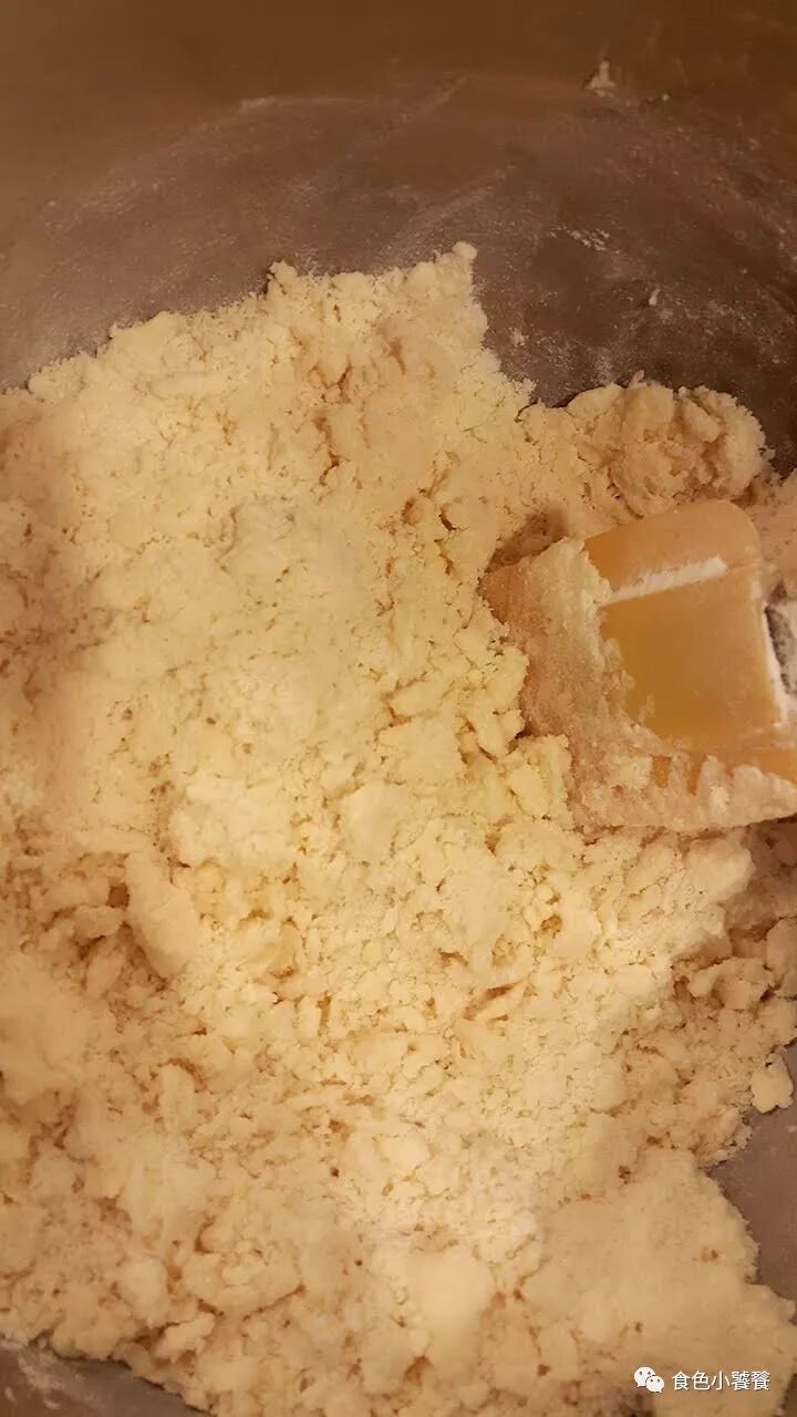 5. 加入面粉混合物,切菜式搅拌成颗粒状