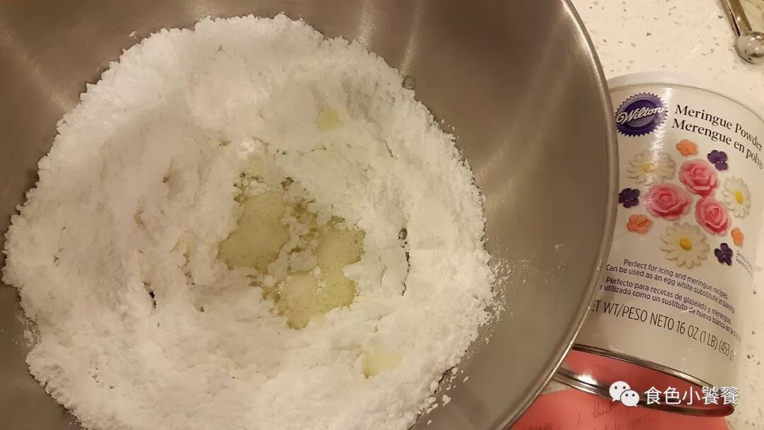 蛋白 2.5个大蛋白 = 蛋白粉 Meringue Powder 5 tsp + 5 Tbs 温水
