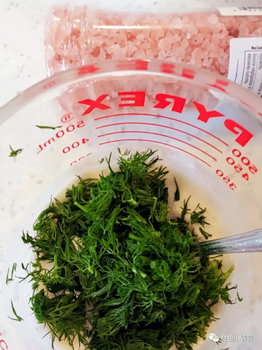 搅匀,加入莳萝和海盐,再搅匀,即可。