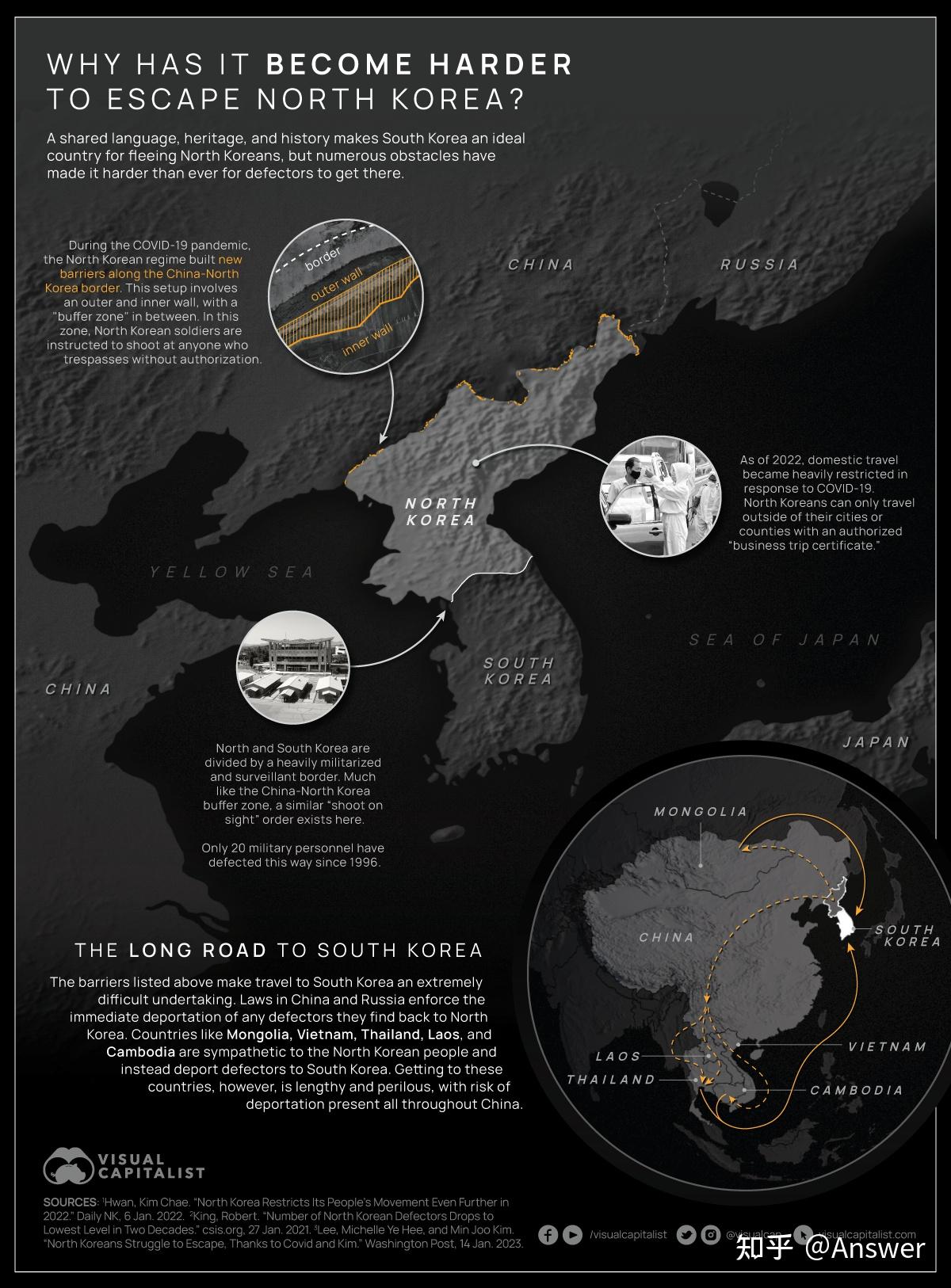 金正恩上台以后,抓紧了对国内的控制,特别是COVID时期,为了防止病毒传入,在中朝边界修了双重的墙并且授权警卫可以击毙进入两墙之间的人。现在每年脱北的人数跟以前比已经可以忽略不计。