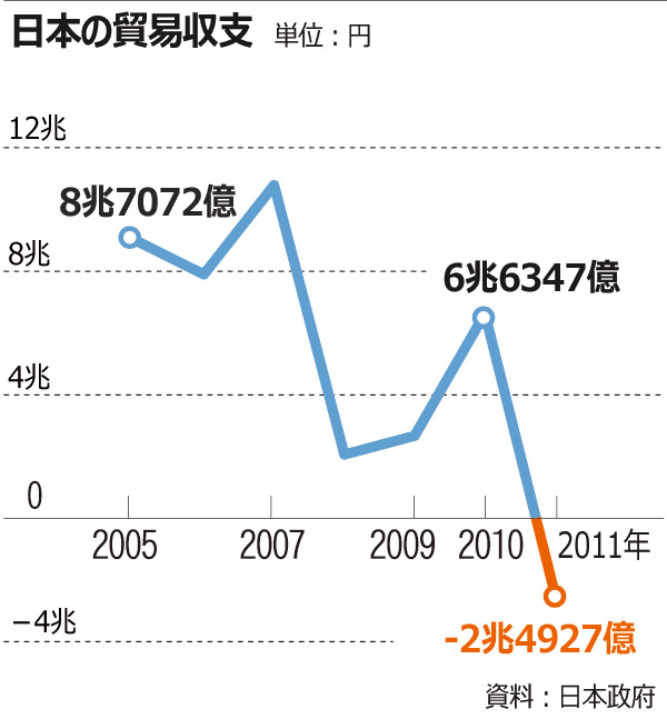 日本国内专家预测今年(2012年)贸易赤字也将不可避免。。。