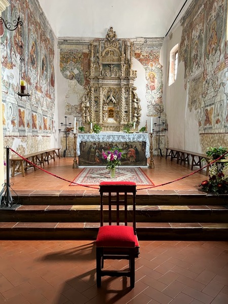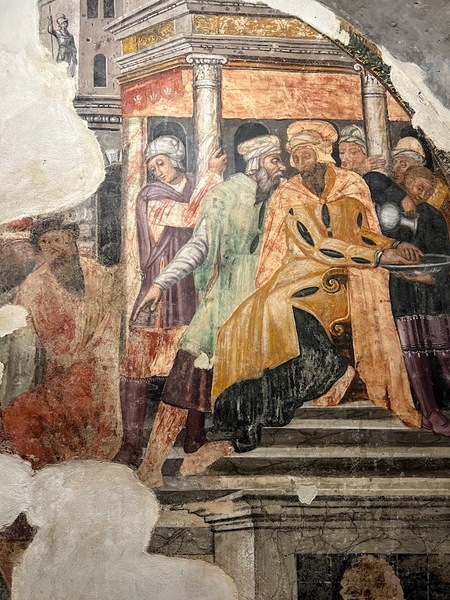 壁画里有些武士形象,根据年代判断,教堂的创建人可能十字军的后裔。