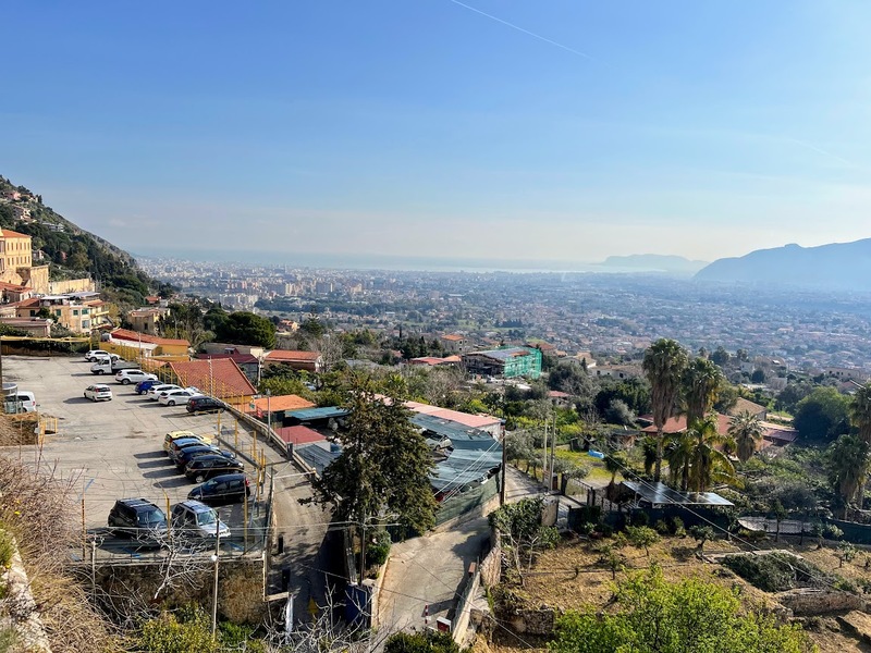 从蒙雷亚莱遥望巴勒莫市区。山谷里弥漫的不知是晨雾还是雾霾。