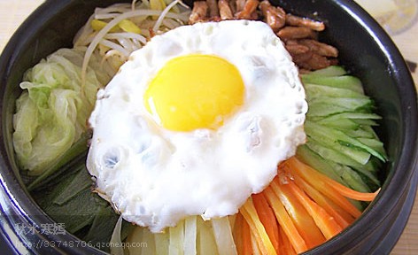 原料:熟米饭、鸡蛋、猪肉丝(或牛肉丝)、黄瓜、胡萝卜、白菜、土豆、海带、黄豆芽、芝麻少许(不加也行)、韩国大酱、韩国辣椒酱。