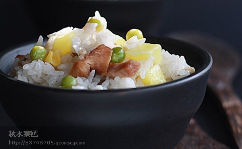 6.继续小火焖至米饭全熟,水分收干。最后加入少许盐拌匀即可。