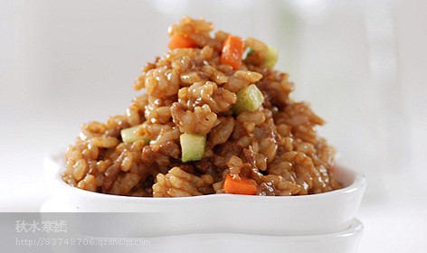 原料:牛肉150g,冷饭300g。黄瓜半根,胡萝卜半根。