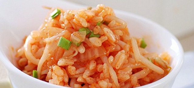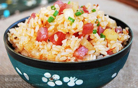 原料:米饭,韩国泡菜,腌萝卜,火腿,葱。