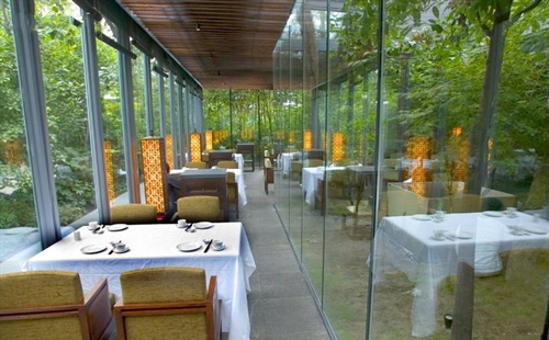 原址为唐招贤寺,一位杭州室内设计师把这个隐藏在北山路粉墙黛瓦后面的破旧仓库变身为一家酒楼,不仅要在风格上刻意营造出旧时大户人家的腔调,菜式设计、卖相和装盘以及餐具、服务生制服上,也处处体现出富贵气派。
