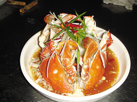 门面极小,海鲜是这里的特色,服务员会不厌其烦地向客人介绍各种海产以及各种烧法,也可以根据你的口味为你量身定做。“倒立蟹”是这里的招牌菜,很入味。“包菜粉丝”、“清蒸带鱼”、“红烧八爪鱼”是服务员推荐的招牌菜式。