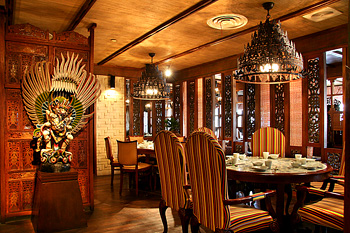 菜肴出品以东南亚菜和粤菜为主,中西合璧、造型精致,菜肴色泽是原料本色或者用蔬菜水果搅汁调色,鲜味则是用鲜汤“吊”出来的。