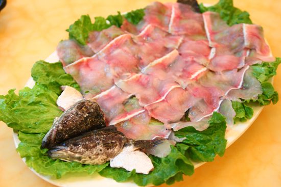 在纳思比餐厅,三文鱼刺身只是个小小的配角,领衔主演的都是日本料理中的高级食材。每周二和周五,珍贵料理材料——金枪鱼、金目鲷鱼、竹荚鱼、带鱼、油墨鱼、鲣鱼从日本长崎的鱼市场直接进货空运到杭州。又白又实的毛蟹肉蘸着从日本带过来的特殊调料做成的蟹醋,这味道鲜得只有自己晓得。