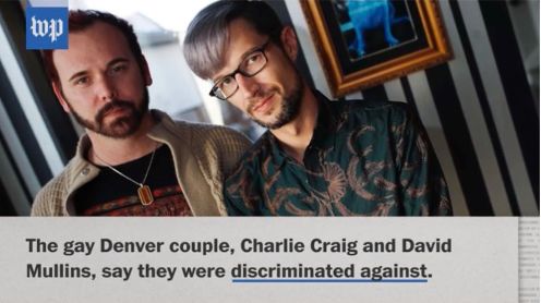 上诉面包师杰克·菲利普斯歧视同性恋的大卫·穆林斯和查理·克雷格。(华盛顿邮报视频截屏。)