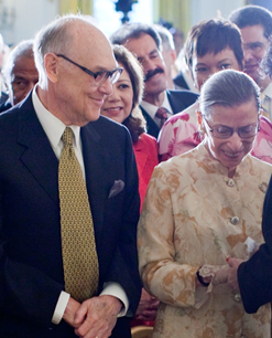 RBG夫妻2009年在白宫参加一个活动(图片来自维基百科)马丁动用了他的所有人脉,直到负责挑选候选人的主要人物、白宫律师伯纳德·努斯鲍姆(Bernard Nussbaum)那里。马丁请他的朋友安排三对夫妇(Ginsburg夫妇与努斯鲍姆夫妇以及马丁朋友夫妇)一起吃饭,而这顿饭使得努斯鲍姆坚信RBG是最佳人选。待到克林顿与RBG见了面后做出任命她的决定时,已经到了要去看一场球赛的时候了。克林顿告诉努斯鲍姆,要看完球赛再给RBG打电话。努斯鲍姆不忍心让RBG苦等,又不能越俎代庖,只能电话告诉她:“我不知道你平日什么时候睡觉。不过今天晚上,你不要早早上床。”RBG听懂了,努斯鲍姆说他听见电话那边哭出了声。克林顿是那天半夜11:33告诉RBG这个决定的。如果说马丁为了妻子有牺牲的话,那么他牺牲得心甘情愿,因为他敬仰妻子的志向,珍爱妻子的才能,因为他们有共同的理念、共同的目标。在这个家庭里,没有女强人的概念,只有心心相印的夫妻情。同样,当马丁患癌时,RBG也是他的支柱。他们始终是共同的、一体的,你中有我,我中有你。到了这个份上,已经不再存在平等不平等的概念了。几乎所有人都知道马丁烧得一手好菜,负责管家里的嘴巴。大多数人不知道的是,在婚姻早期,这一对夫妻是最“公平”地分担家务的:他们一周每人负责做三天菜,剩下一天则取决于当周两个人工作量的多少,由做得比较少的那位负责。但是RBG就是没兴趣好好学做菜,有了孩子后,因孩子不喜欢吃妈妈做的菜,更因为体恤妻子,马丁就高高兴兴地独自承担了家庭厨师的角色,他甚至有过从头到尾把厚厚一本法国菜谱里的菜一个个做下来的故事,难怪他成了远近有名的厨艺高手。共同生活56年后,马丁在临别之际,给RBG留下了这样一个手书字条:“我最亲爱的露丝,除了(地位)稍稍次于你的(我们的)父母,孩子及他们的孩子,你是我一生中唯一爱过的人。而自从我们在康奈尔初次见面的那一天起,我就一直钦佩和爱着你。看着你达到法律界的最高境界是一种何样的享受!”现在的人可能不理解RBG那代女性所处的地位。我们想象不出有人在你要进入大学图书馆时会对你说不,而唯一的原因是你的性别。当时很多男性可以理所当然享受的权利,女性却是需要“理由”的。但成长于那个时代的RBG,丝毫不被这样的社会状况所桎梏。她不仅具备了超时代的平等意识,更具备了争取平权的能力和智慧。RBG广为人知的一段话是:“当我有时被问到什么时候(最高法院的妇女人数)才算够多,我说,‘九个’。人们会感到震惊。但是没有人对九个(大法官)全是男人提出过疑问。”她对上面问题的回答非常巧妙。第一,只有平等意识深入到骨子里的人才会懂得,问话的人本身有问题。要知道,提出这样问题的人并不一定反对女性平等。只是,很少有人在概念的理解上达到RBG的境界。第二,RBG的智慧之处是,她让问话的人震惊了,也正是这样的震惊,让人们意识到自己概念上的荒唐。RBG争取女权的策略也是如此。她虽然自己意识超前,却不会以此标准去要求社会,而是去寻找特别有说服力的案例,打赢这样的官司,同时也改变人们的观念。法律界人士说,回头去看她走过的路,其大局观让人佩服:每一步都是精心设计,又步步为营,一环扣一环,不断提高所争取权利的层次,真正的有勇有谋。比如,RBG早期的几个案子都是类似前面所述那个税务案件,借为男性争取权利的机会要求男女平等。这是因为,在那个时候,“女性被歧视了”根本不是一条法庭上会接受的辩护理由。所以,今天妇女的地位是靠一个一个案子去争辩,一点一点权利去争取,滴水石穿,聚沙成塔地促使人们观念上的改变,直至整个社会慢慢接受男女平等的概念。想象得出吗?RBG进入哈佛法学院后,法学院院长在刚开学时特意召集所有被录取的女生一起吃了顿饭,而这顿饭的主要目的是要求这些女生说明为什么她们那么有价值,居然可以占据一个本该属于男生的位置。这就是那时的现实:妇女获得的任何机会,都被认为是对男人权利的剥夺。这就是RBG等先辈们开始争取女权的起点!RBG还有一句著名的话是,我们不要特权,只需要你们不再骑在我们的脖子上。我的体会,不管RBG从怎样的角度,用怎样的语言来说女权,归根结底的意思就是女性本来就一点也不比男性差。什么时候女性不被看成是不同的,什么时候人们能够忘记性别了,就是女性平等真正到来的一天。这样深刻的认识远超出了当时甚至现在的社会共识。所以,RBG成为一些早期重要女权组织的创建人,成为在法庭上争取女权的先锋战士,最终成为女权运动的泰斗人物,绝非偶然。