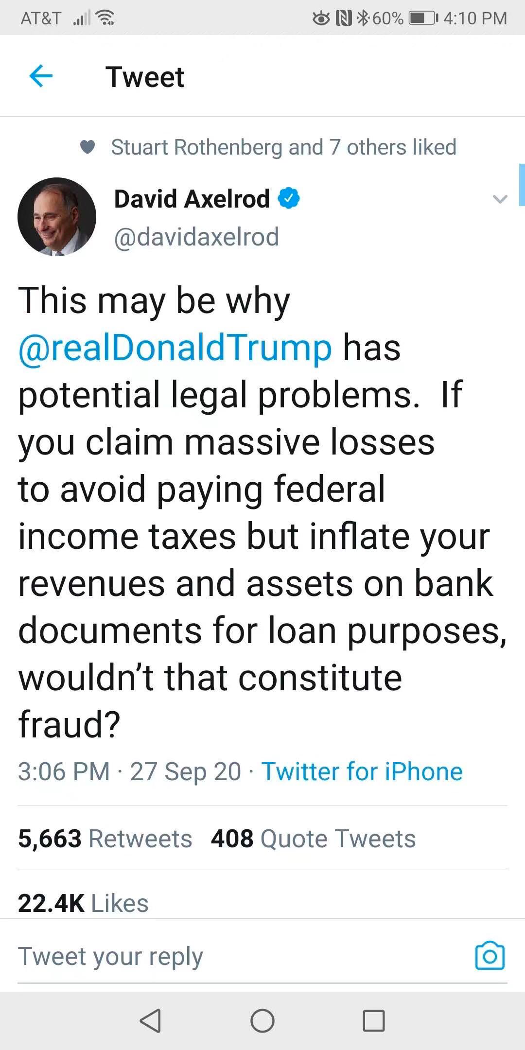 9月27日下午,《纽约时报》重磅爆料:在过去15年中的10年,特朗普缴纳的个人联邦所得税为零——因为他报告损失的钱比他挣的钱多得多。《纽约时报》获得的特朗普最近两年的税务信息是2016年和2017年。很巧的是,这两年他所缴的个人联邦所得税都是一样的数字,750美元。中国有句俗话,“一屋不扫何以扫天下”?这些被披露的税表可能破坏特朗普的“人设”。他一再宣称自己是一个成功的商人,因此是美国经济的能干管理者,这对他的竞选形象至关重要。这项调查会否动摇总统选举?如果报道属实,要么川普是故意偷税漏税,申报巨额亏损;要么就是他真的又重新走回“败家子”的老路,经营不善,没钱了(同时还夸大收入骗取巨额银行贷款)。