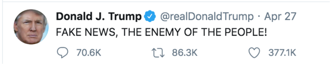 川普自开始参加总统竞选后,就大力攻击主流媒体,我们几乎没有一天不听到“假新闻”这个词。但极具讽刺的是,川普自己才是个谣言制造工厂。康奈尔大学最近一个对新冠疫情有关的错误信息来源分析表明,川普是世界上最大的冠状病毒错误信息推动者,接近38%的错误信息是从川普那里发源的。
