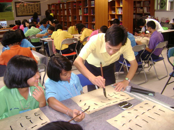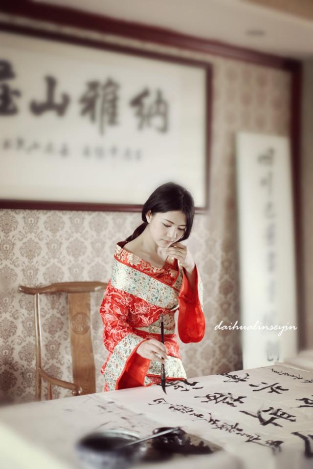 先说“竖锋”。所谓竖锋,简单地说,就是把笔锋上提而竖立起来,这是解决中锋用笔的一个首要因素。众所周知,毛笔在蘸墨未书写之前,一般来说,主毫和副毫均挺直而无扭曲之状,可是一旦触纸,由于受到了外界的压力,柔软的笔毫便自然立即倒向纸上,如果此时顺势运笔,平托直拉,那只能写出扁薄而单调的线条,更何况在整个书写过程中,笔毫的平卧纸上是其常性,老是“卧”在那里拖来拉去,要想发挥中心的张力是办不到的,只有把笔锋竖立起来,才能让笔心永远居中而步步向前。古人用“如锥画沙”来形容他,确实是非常深刻的,锥能“立”起来,那么从平沙的沟痕中所反映出来的正是它的深度和厚度,挺拔而中含,给人以“圆”的立体之感。所以,历来对于“竖锋”的这一用笔方法是非常重视的。