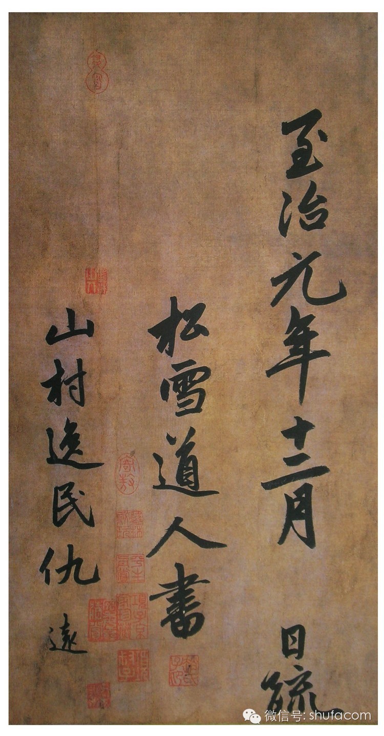 赵孟頫书《送瑛公住持隆教寺疏》卷,纸本,纵47.7、横333.5厘米,书于至治元年12月,赵氏时年 68岁。疏的正文凡25行,每行最多7字。