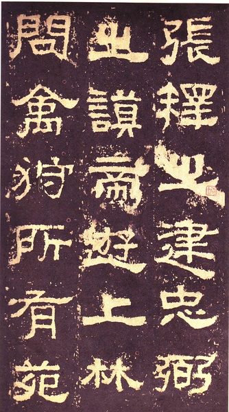 《张迁碑》全称《汉故谷城长荡阴令张君表颂》,亦称《张迁表颂》,东汉晚期碑刻,隶书。明初出土,保存完好,现陈列于山东泰山岱庙碑廊。碑内容为故吏韦萌等追念县令张迁的业绩。