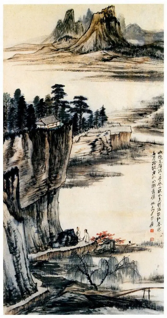 张大千作品题材广泛,人物、山水、花鸟、走兽皆精。画人物多采古装,借人物以抒情怀;画翎毛花卉或工笔或写意,清润秀丽,落落大方;山水涉笔成趣,点画新奇,富有诗意。晚年常用泼墨、泼彩描绘风景,独具风格。为现当代画坛上最具影响的国画大师之一,二十世纪中国画坛最具传奇色彩的人物。20世纪50年代,张大千游历世界,获得巨大的国际声誉,被西方艺坛赞为“东方之笔”。
